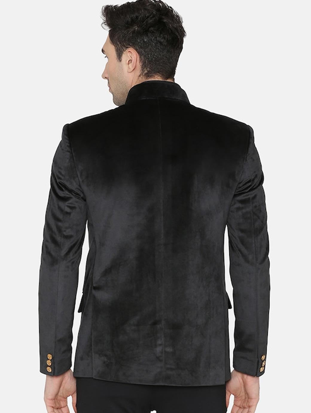Men Black Solid Regular Fit Bandhgala Blazer