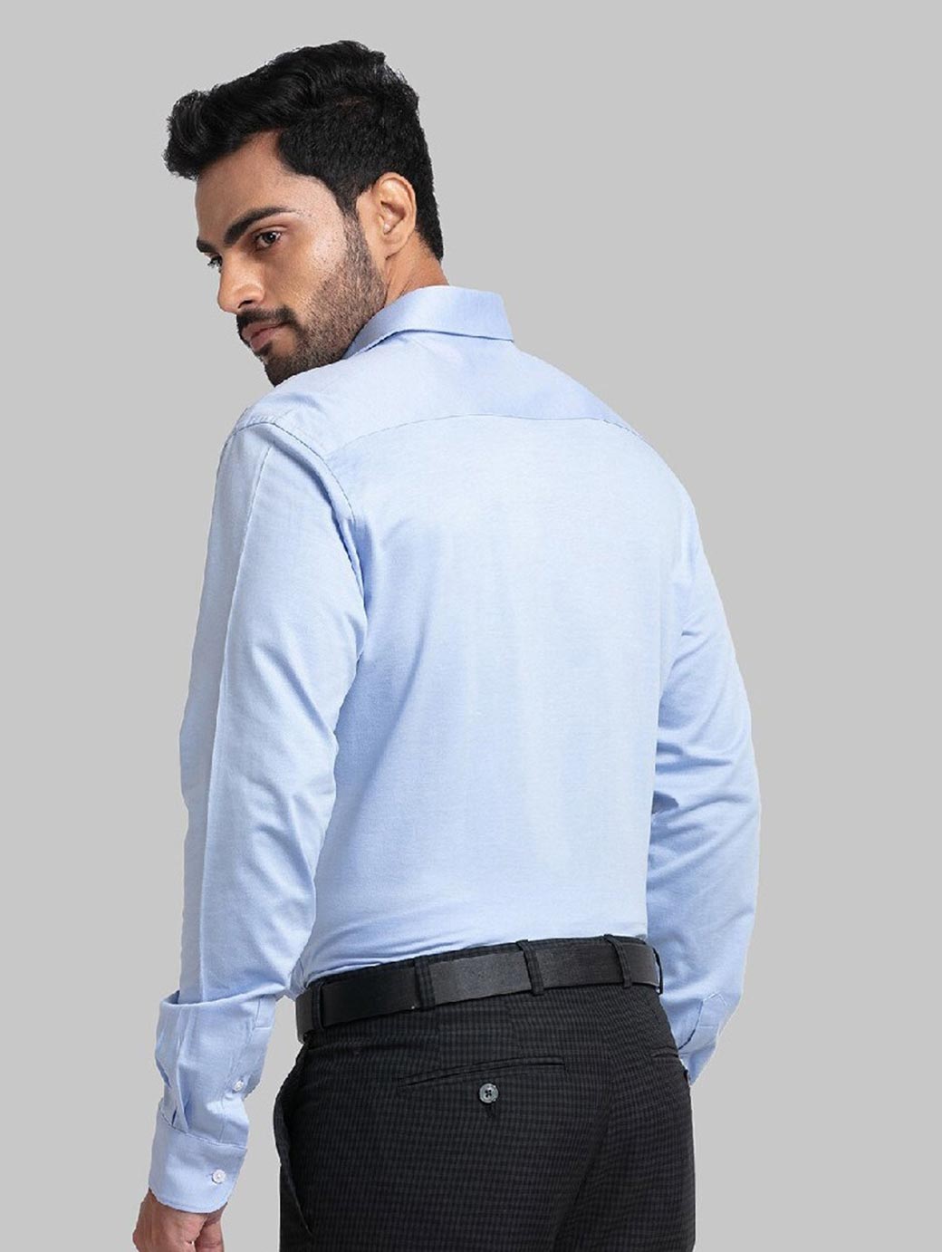 Blue solid opaque Formal shirt ,has a spread collar, button placket, long regular sleeves, curved hem