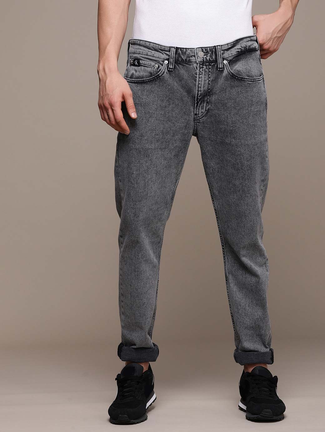 Men Grey Slim Tapered Fit Mid-Rise Heavy Fade Stretchable Jeans