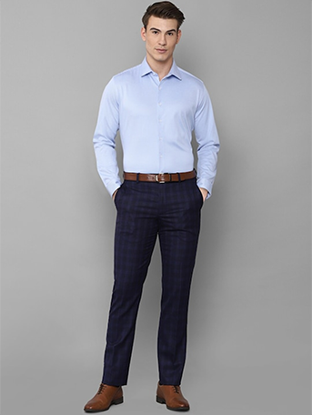 Men Navy Blue Checked Slim Fit Trousers