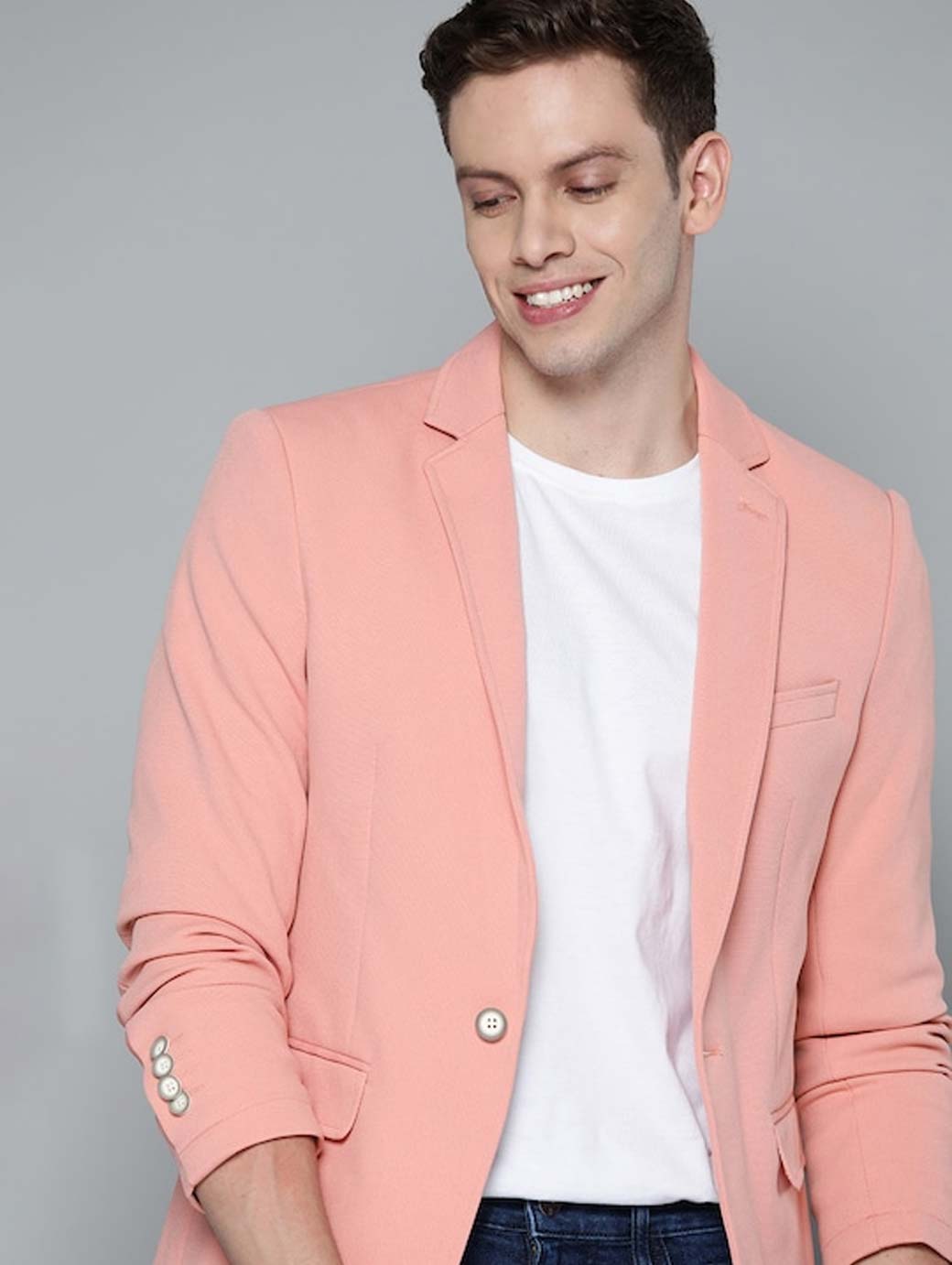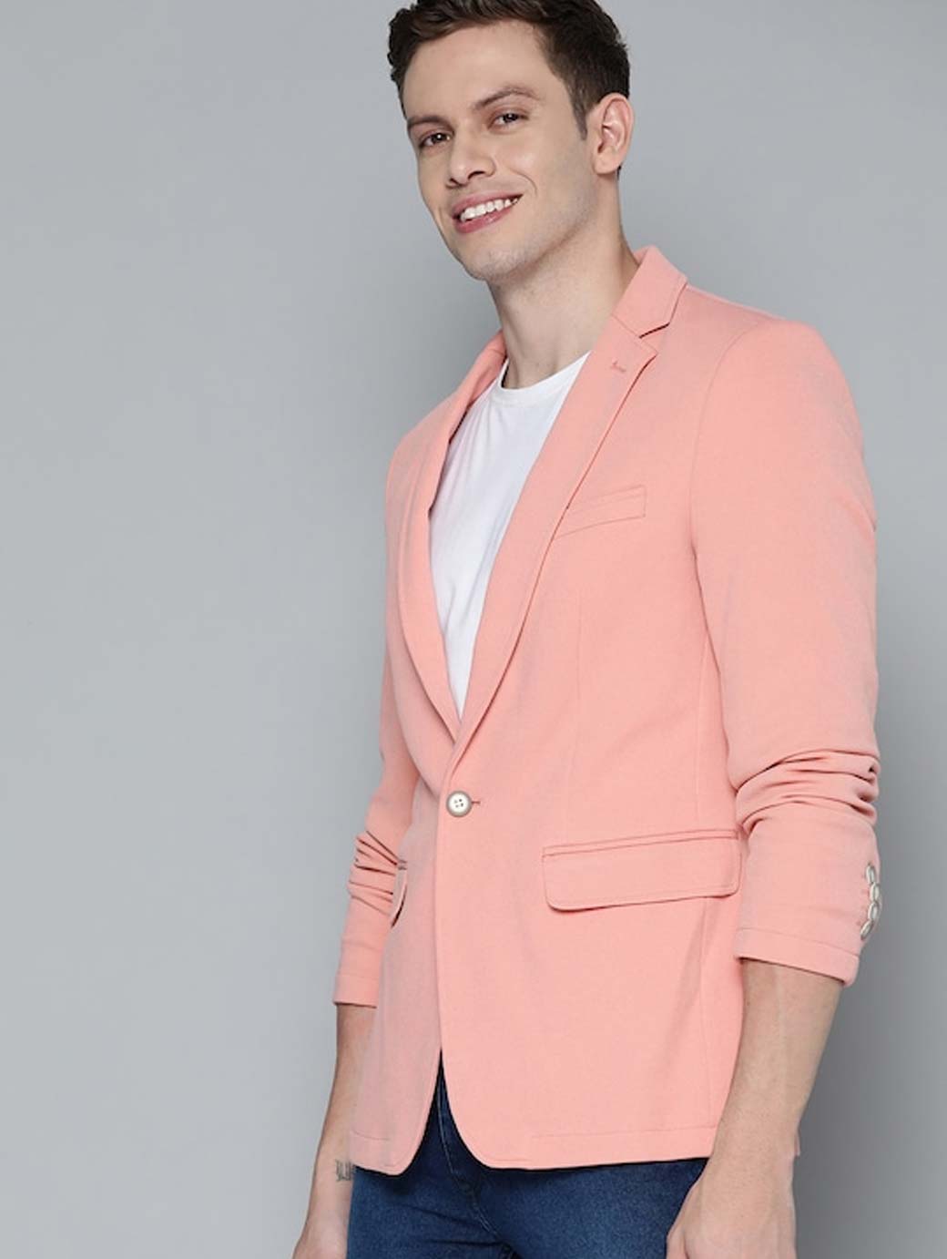Men Pink Textured Regular Fit Smart Casual Blazer
