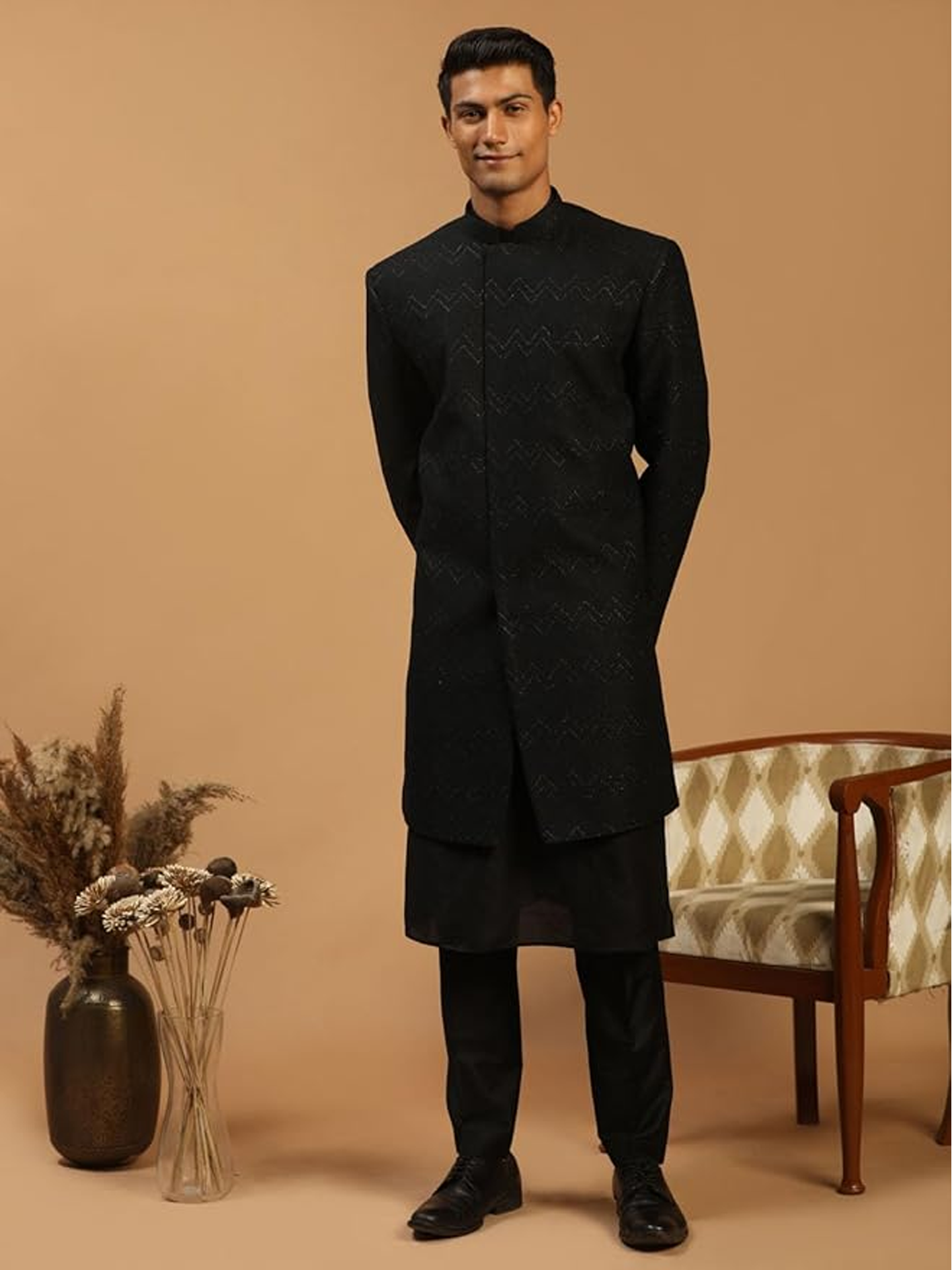 Fabric: Viscose | Contents: a Imported Fabric Designer Indowestern, Kurta And Pant style Pyjama Set