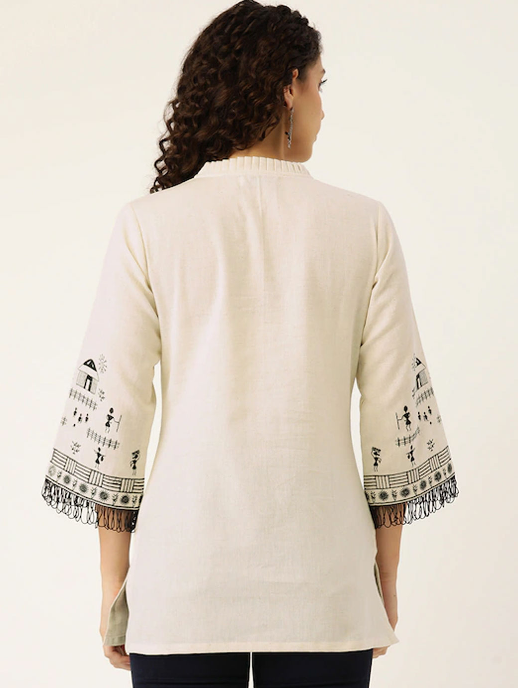 Off white regular peplum top Self design self design Shoulder straps, sleeveless, shoulder straps sleeves Woven.