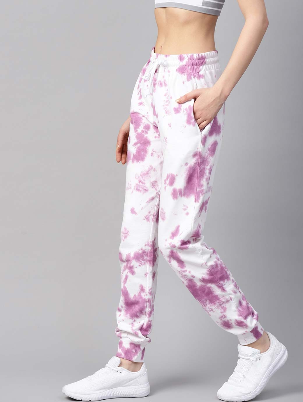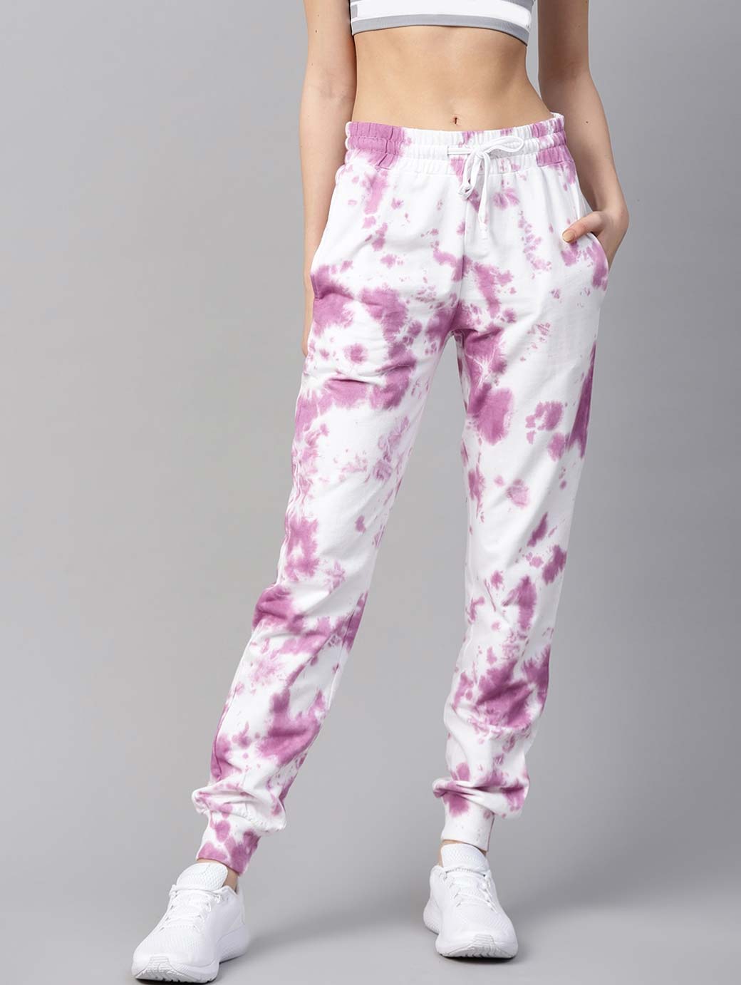 Women White & Purple Dyed Joggers