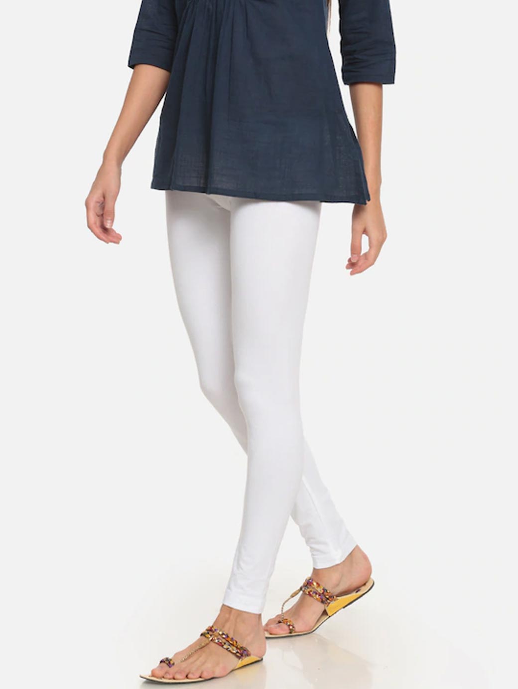 Women White Solid Ankle-Length Leggings