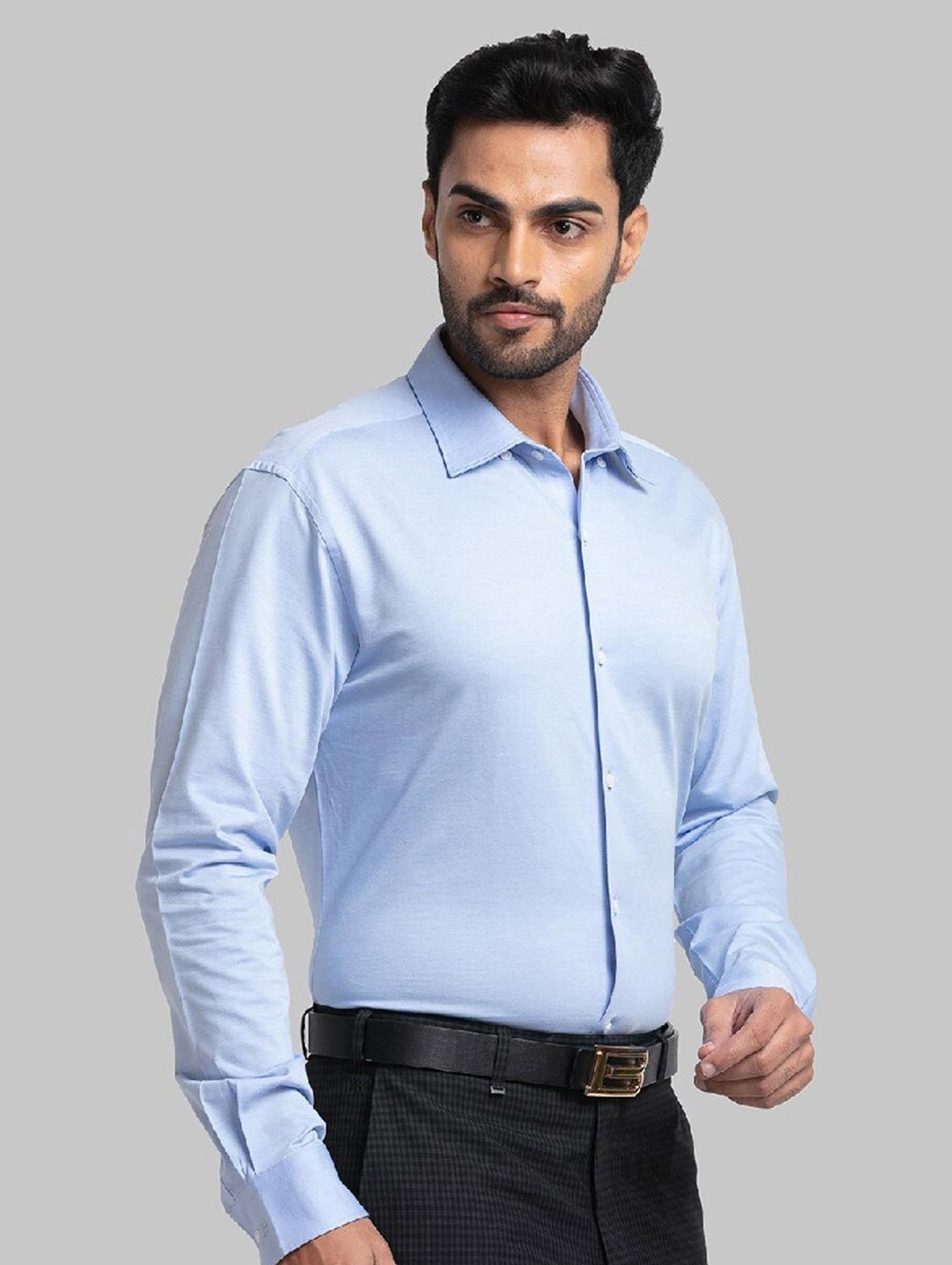 Blue solid opaque Formal shirt ,has a spread collar, button placket, long regular sleeves, curved hem