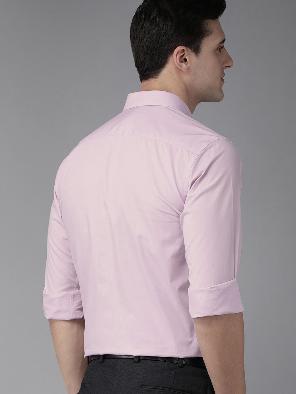 Men Lavender Solid Slim Fit Pure Cotton Formal Shirt