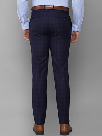 Men Navy Blue Checked Slim Fit Trousers