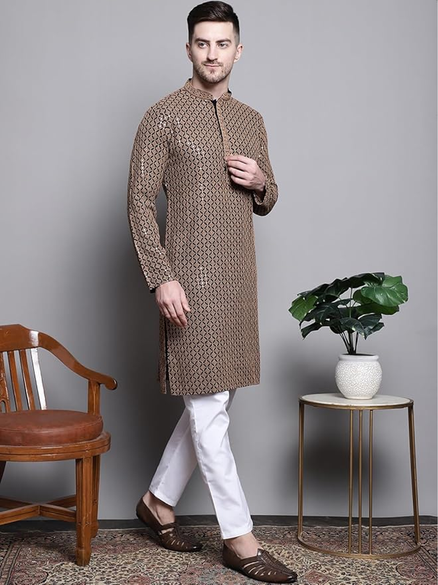 Size Guide : Men's Kurtas is in 5 inches loosing i.e. chest measurements for Kurtas will be S(36)-41; M(38) - 43 ; L(40) - 45 ; XL(42) - 47 ; XXL(44) - 49
