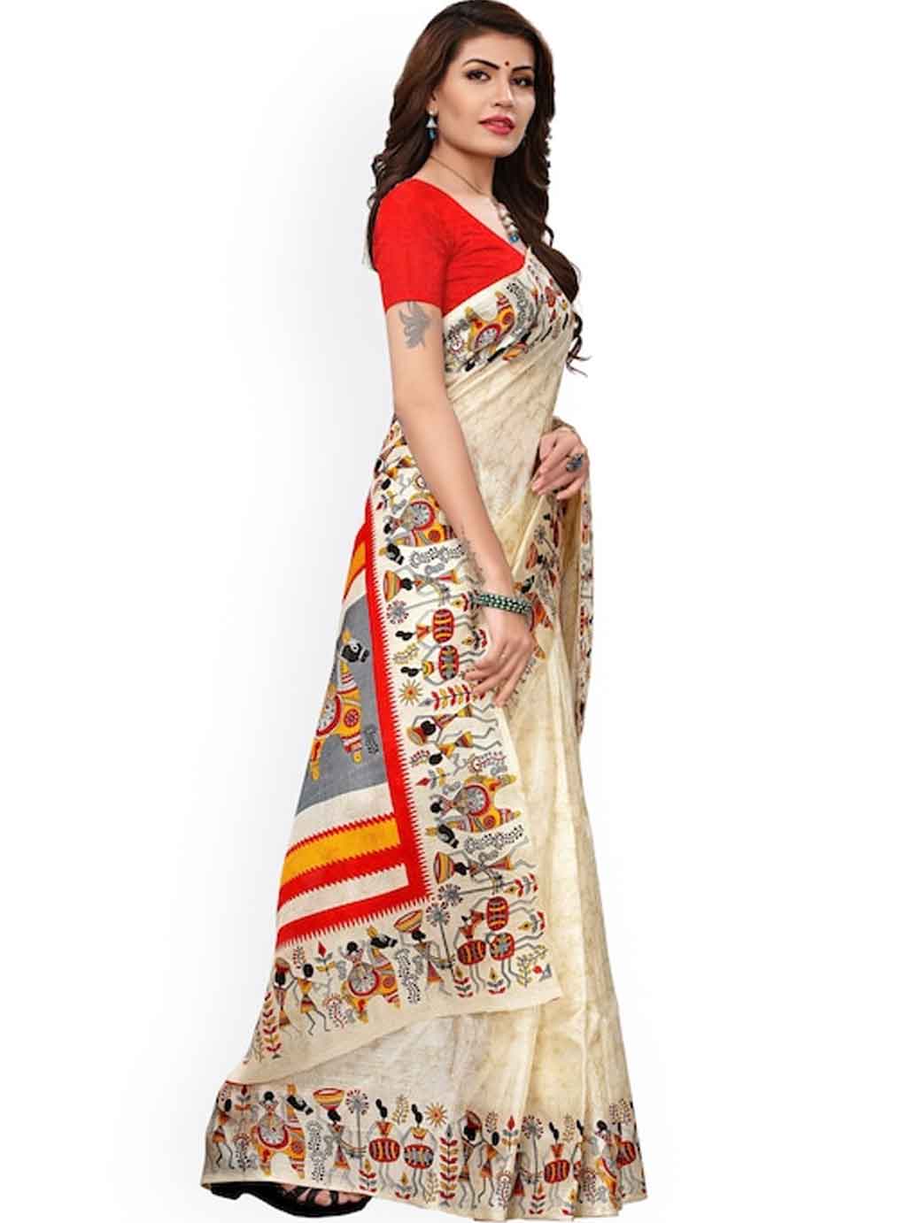 Art silk is manufactured by synthetic fibres like rayon. It’s light in weight and is soft on the skin for comfort in summers.