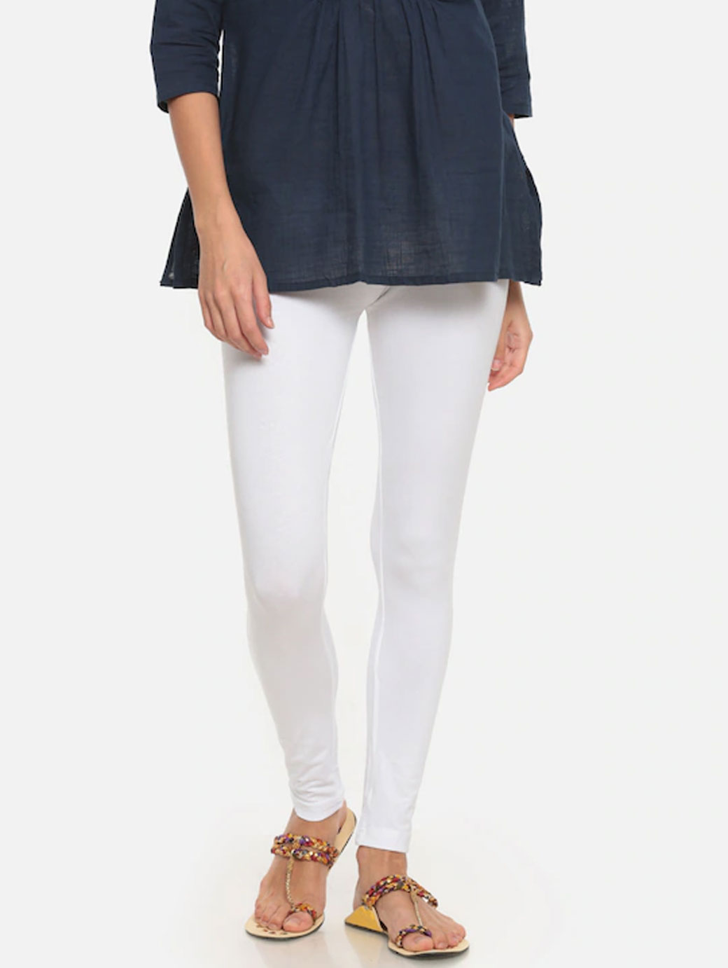 Women White Solid Ankle-Length Leggings